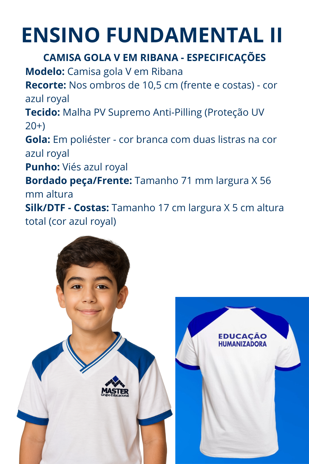 CAMISA GOLA RIBANA + RECORTE OMBROS - ENSINO FUNDAMENTAL II (6° AO 9° ANO)